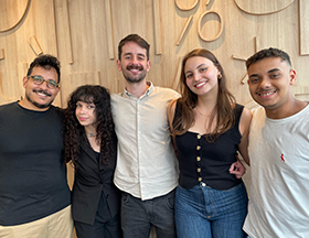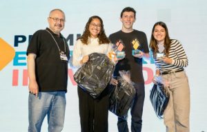 Gerente de Responsabilidade Social Brasil (Mateus), Líder de Engajamento Senior (José) e time IBM Innovation Studio (Júlia Guerreiro, Lívia Batista e Ian Donovan)