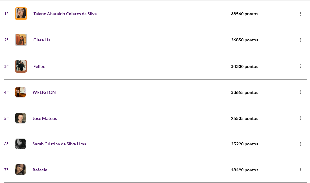 Ranking da Gamificação